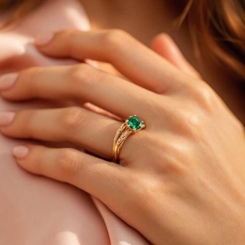 Esmeralda natural colombiana de color verde intenso, proveniente de Muzo, reconocida mundialmente por la calidad y belleza de sus gemas.